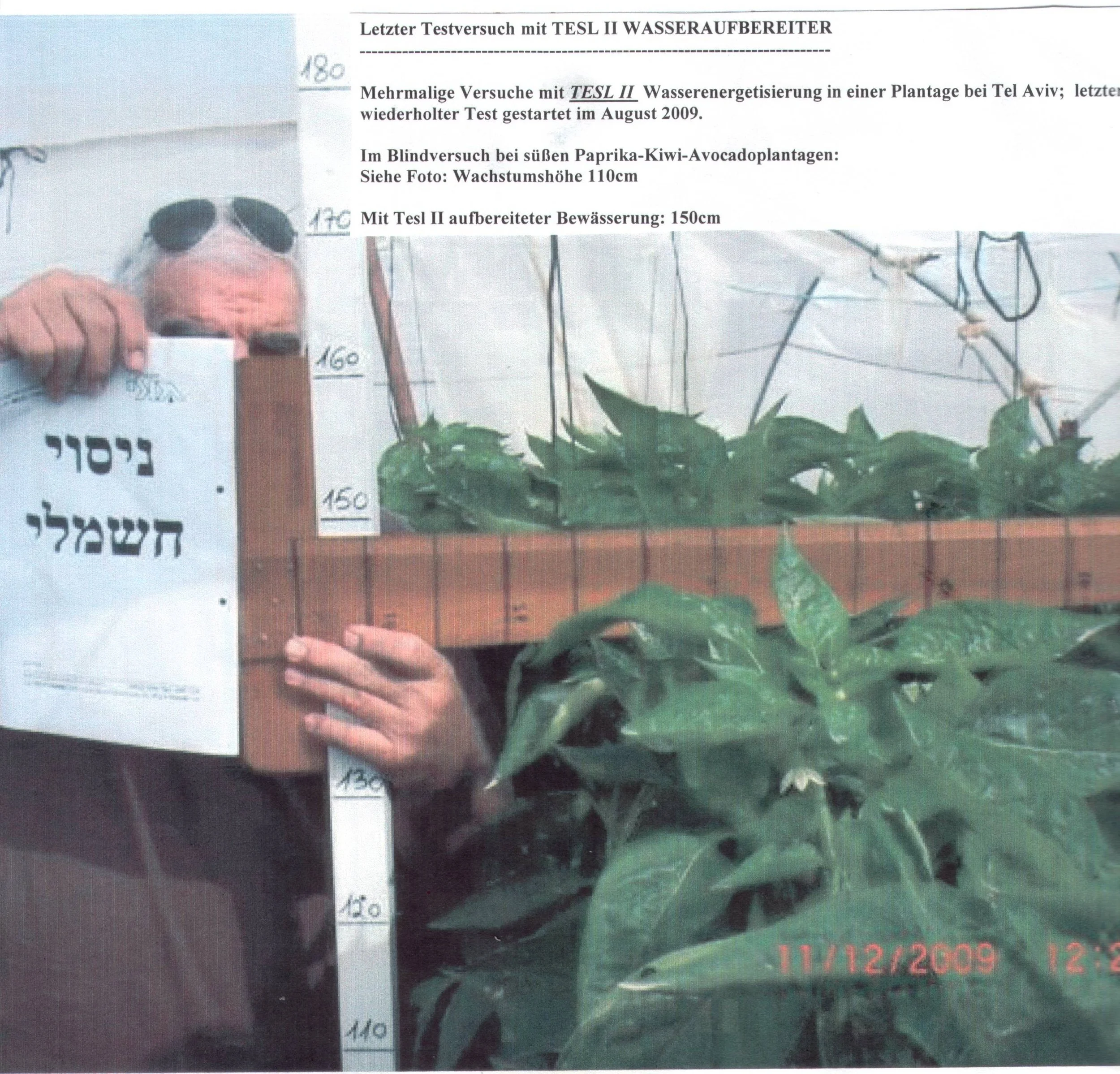 Mehrmaliger Versuch mit Tesl II Wasserenergetisierung in einer Plantage bei Tel Aviv;